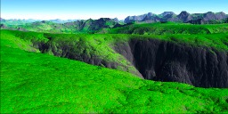 RGB Grass is a 2D color texture which evokes - in an impressionistic way - grass seen from afar. This primitive was added primarily for use in ArtMatic Voyager where it is slope dependent (grass tends to appear where the terrain is flat). Within ArtMatic Pro, the "slope values" are derived from the global X input values (since they would be otherwise undefined).