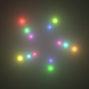 Z Matrix Lights provides a pattern of colored lights on a square grid modulated by the z input. 'Amplitude' increases color variation and luminosity while "color cycle" cycles hues and goes from dark to white. "z sensibility" sets the overall sensibility to z input. When z increases, color hues shift and lights gets bigger.