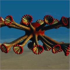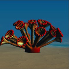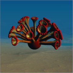 3D Ridged Fractal is a color version of the 3D Ridged Fractal noise especially useful for designing terrains in ArtMatic Voyager. The fourth output is useful as either alpha channel or elevation map.