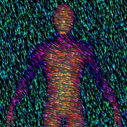 The textures are made by accumulation of randomly placed RGBA geometrical shapes (polyhedrons or lines).